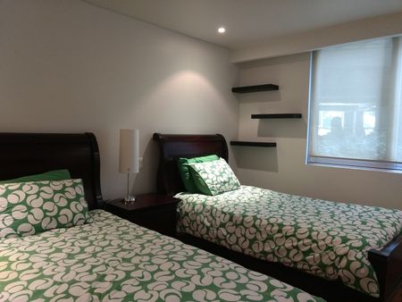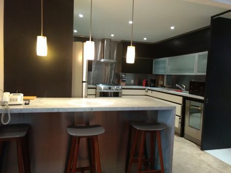 Bonito departamento amueblado de dos recamaras cada una con baño, un family room, sala, comedor, cocina abierta, cuarto de servicio con baño privado, cuarto de lavado, 2 estacionamientos, vigilancia las 24 horas, cerca del parque Gandhi.