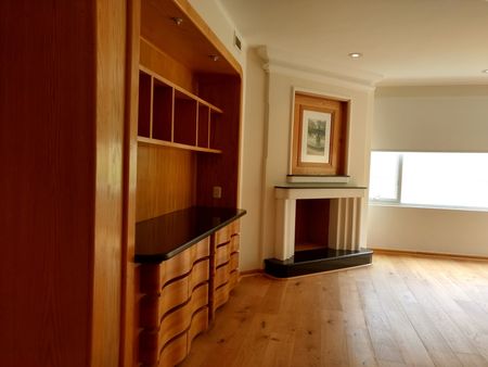 Precioso departamento de 3 recamaras cada una con baño privado y vestidor. Sala, comedor, bar con cocineta, acabados de lujo, jardín privado, biblioteca, cocina cerrada, dos cuartos de servicio con baño privado, área de lavado, 5 estacionamientos, alberca, gimnasio, salón de eventos, salón de juntas, ludoteca, cancha de tenis, vigilancia las 24 horas, circuito cerrado, jacuzzi, bodega, calefacción y aire acondicionado, casa club, y acceso controlado.
