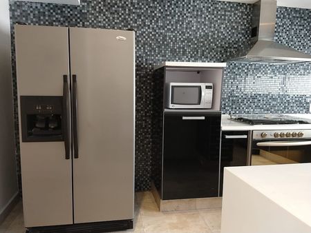 Departamento de 3 recamaras cada una con baño privado y vestidor, family room sala, comedor, terraza en área social, en dos plantas, cocina equipada, cuarto de servicio con baño, cuarto de lavado 4 estacionamientos, alberca, gimnasio, ludoteca, salón de eventos, Spa, jacuzzi, vigilancia las 24 horas.